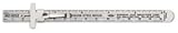 Decimal equivalent table, pocket clip, sliding T-stop stationary indicator & measure blind holes.Rule has both English and metric scales graduated in 1/32" and millimeter increments.. 2522 6" Stainless Steel Rule Rule measures in English and metric and is graduated in 1/32" and millimeter increments. It features a decimal equivalent table and has a pocket clip that includes a sliding T-stop to use as a stationary indicator and for measuring blind holes.